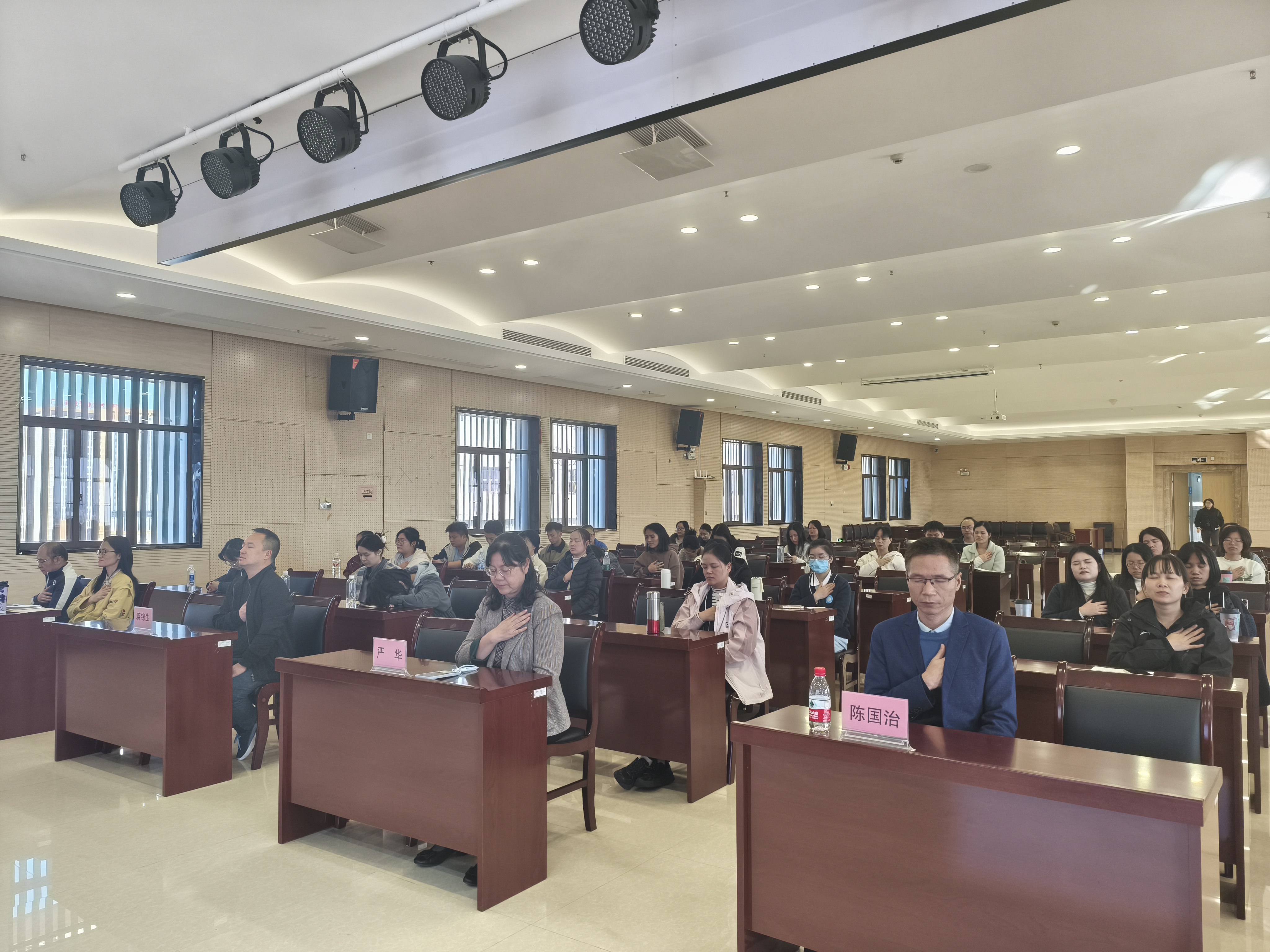 图为干部职工进行正念训练