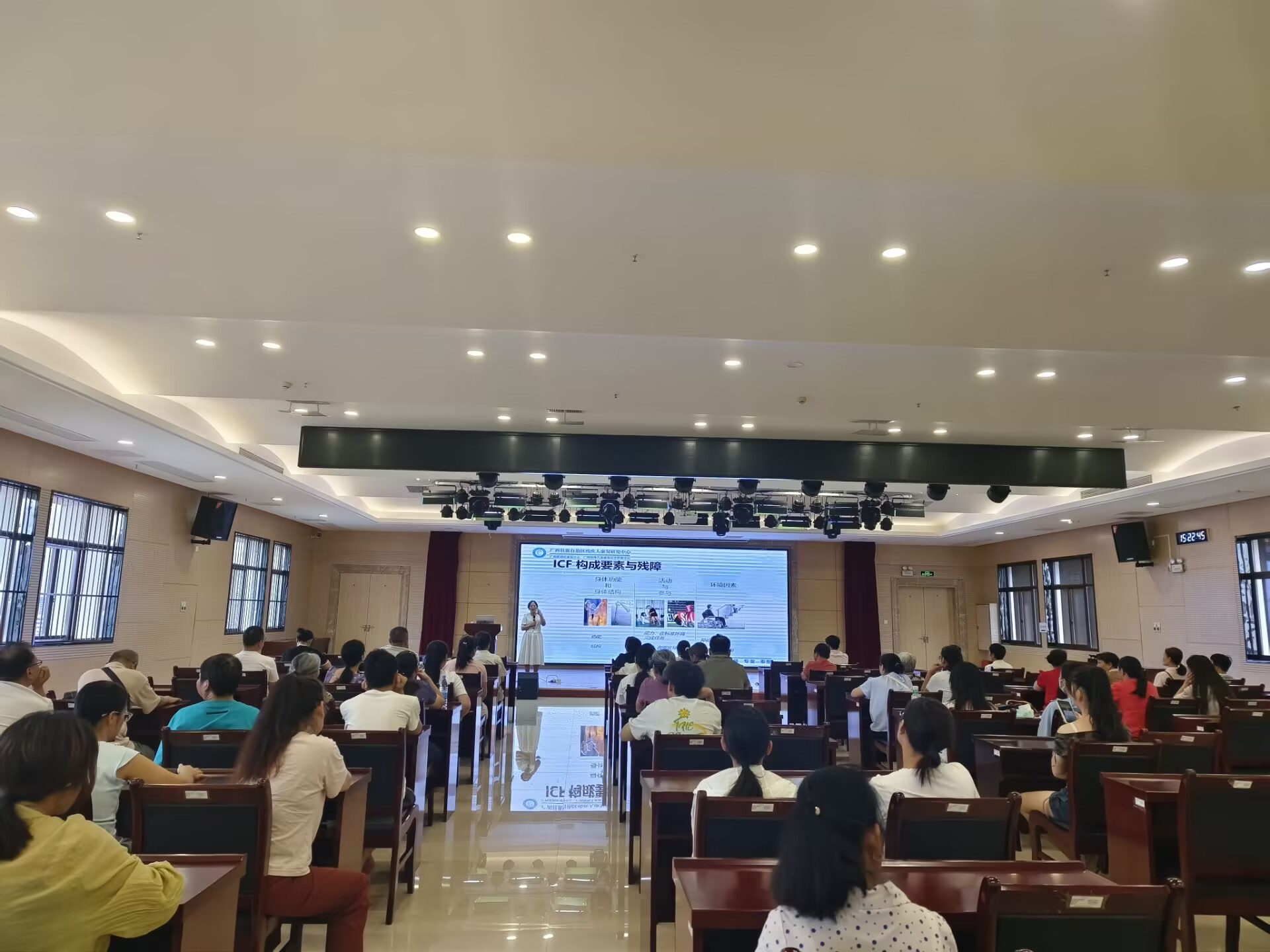 为提升家长对学前特殊儿童康复干预的认知与实操能力,加强家校协同康复工作,2025年9月11日下午,自治区残疾人康复研究中心康复教育科举办“基于ICF-CY框架下学前特殊儿童康复干预策略”家长培训。本次培训由康复教育科科长蒙爱珍主讲,科室全体家长参加。