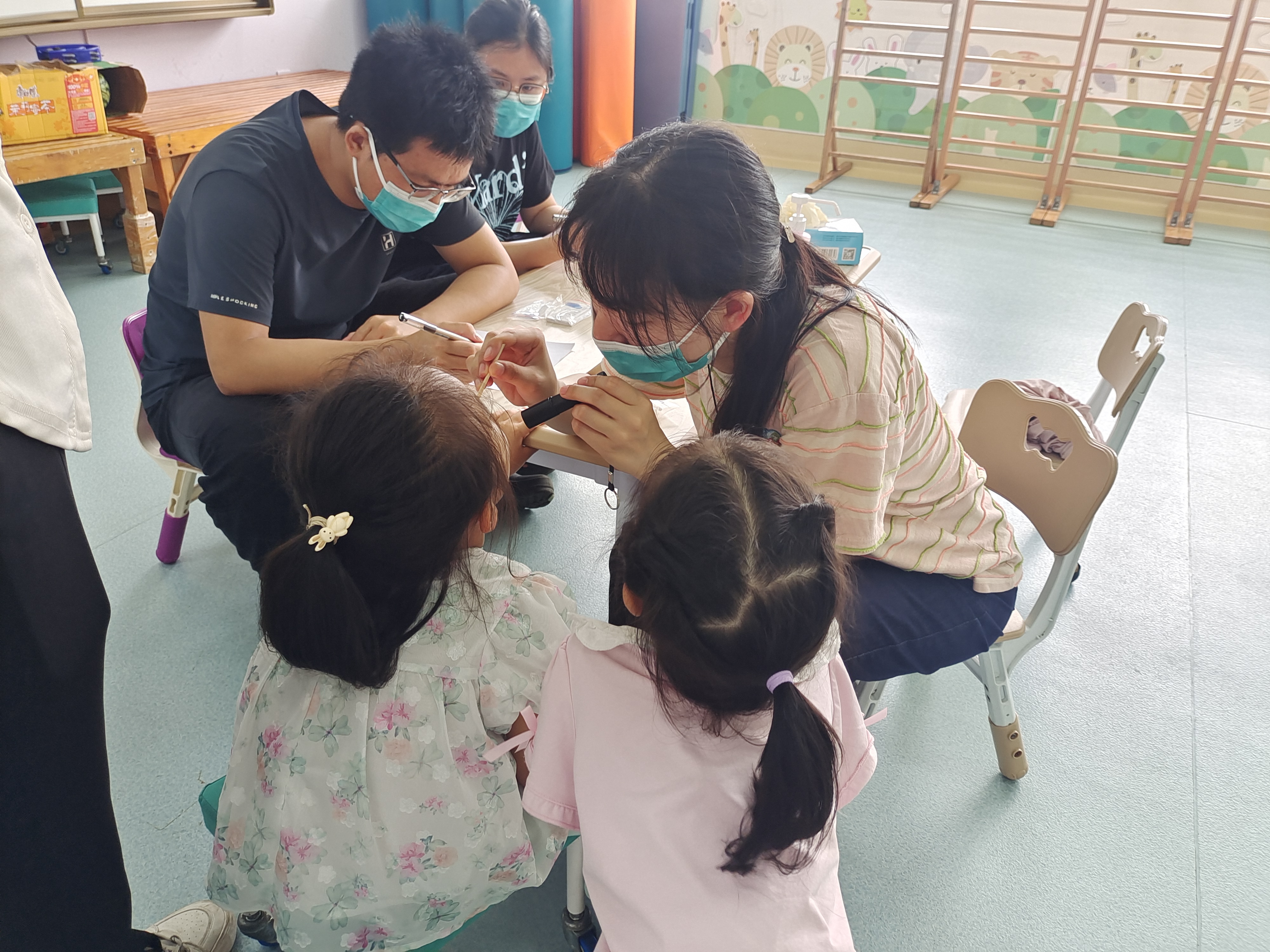 讲座结束后,施春梅副主任为家长和市民提供免费口腔健康咨询服务,结合孩子具体情况给出专业建议。医护团队志愿者还为孩子们进行了细致的口腔健康检查和涂氟服务。