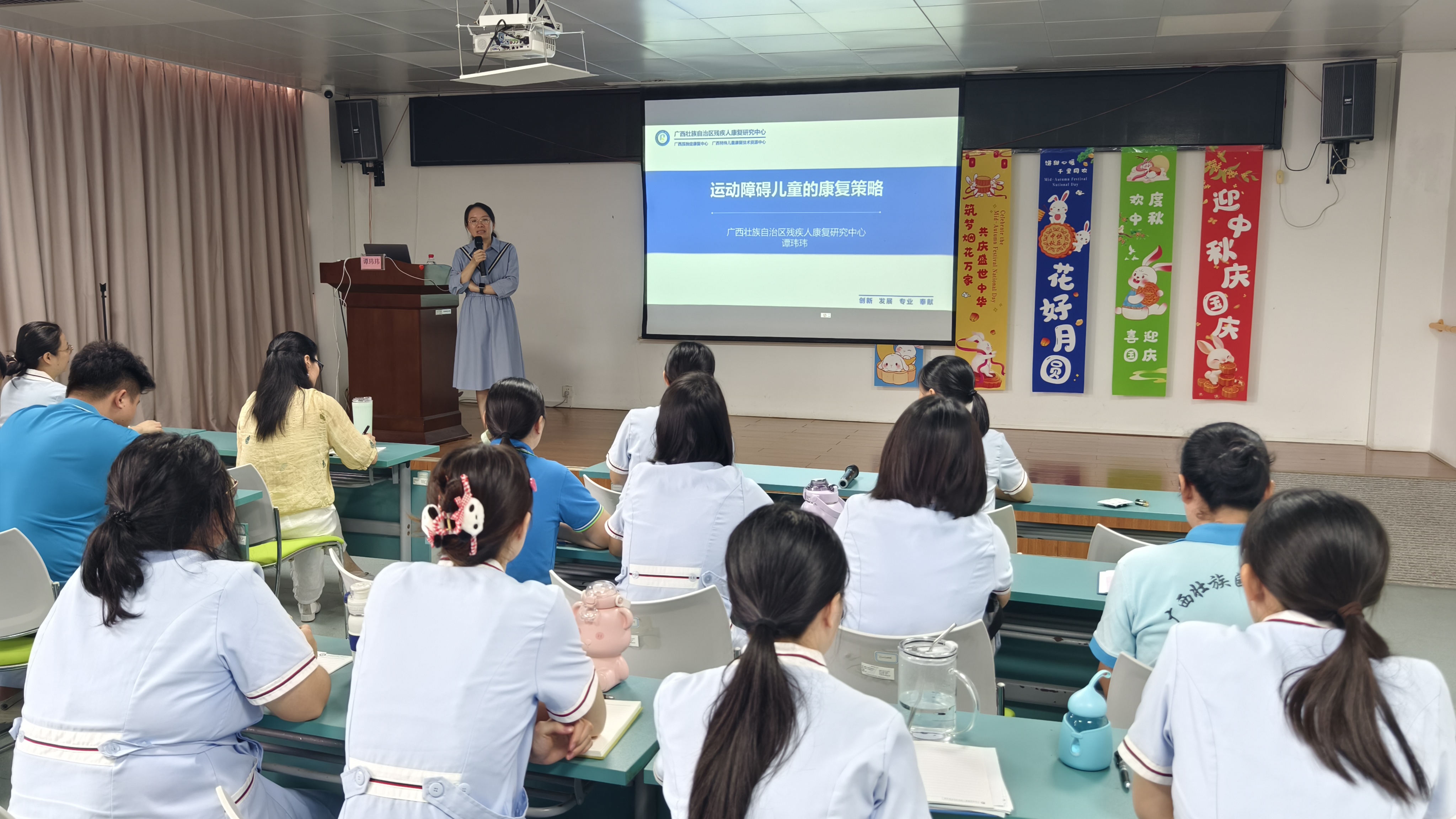 图为康复医学科科室人员认真听课