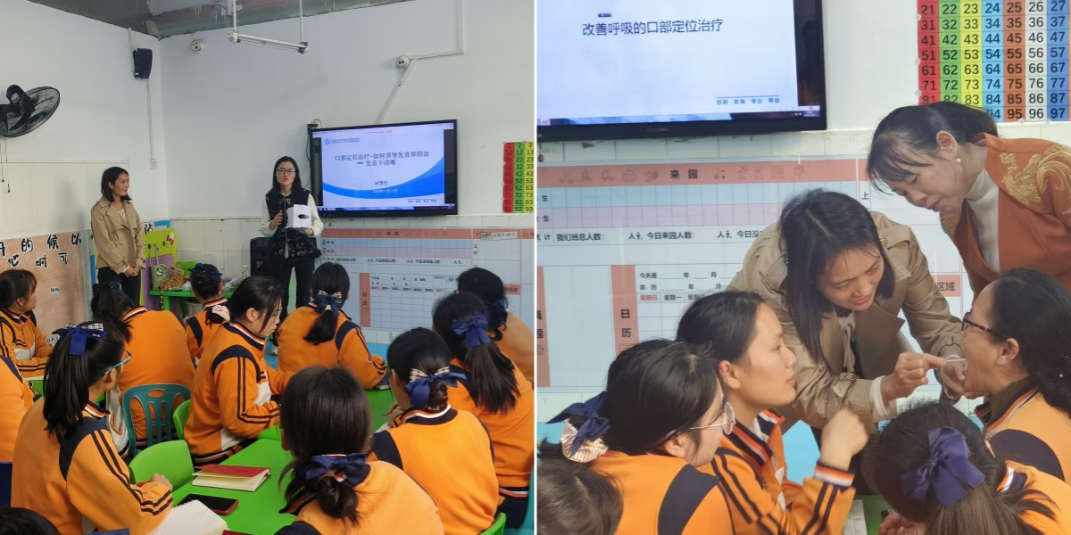 图为口肌及构音训练专题培训及一对一指导