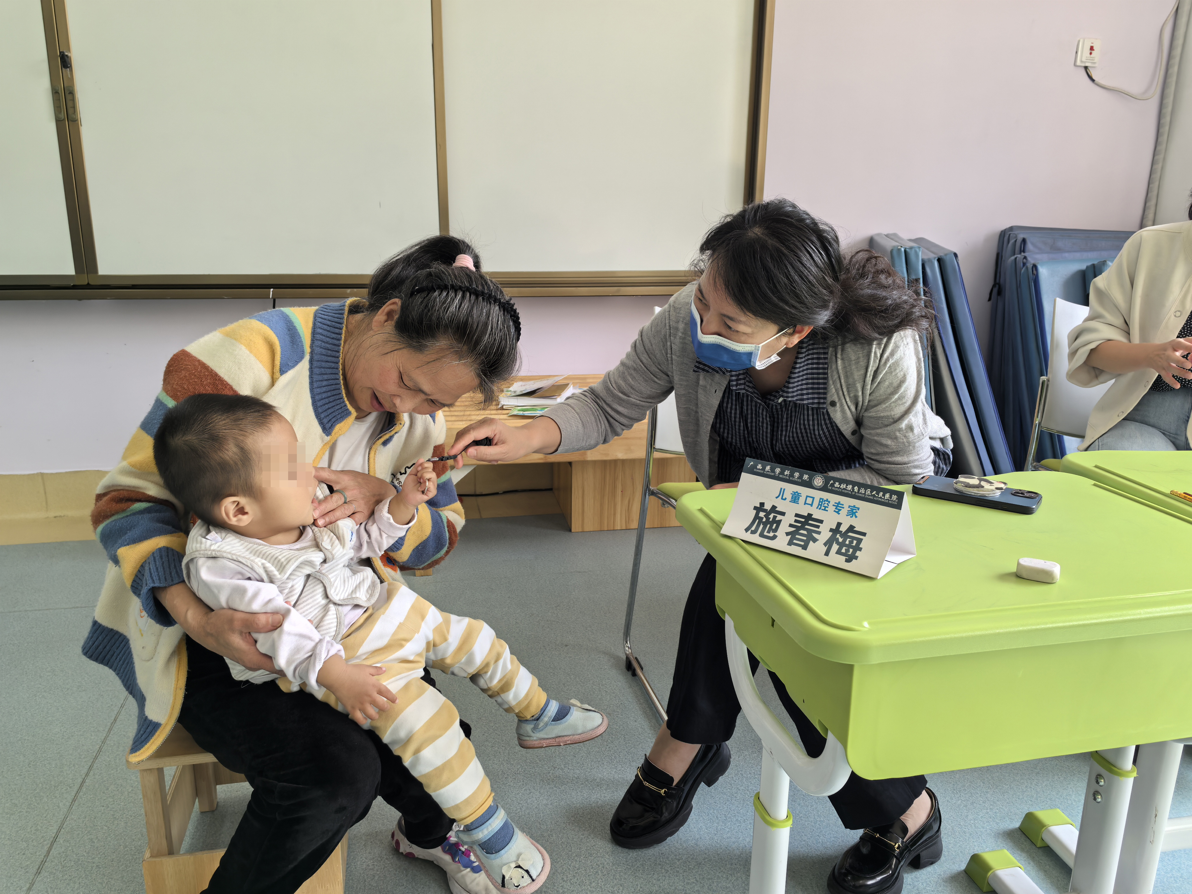 图为施春梅检查孩子的口腔