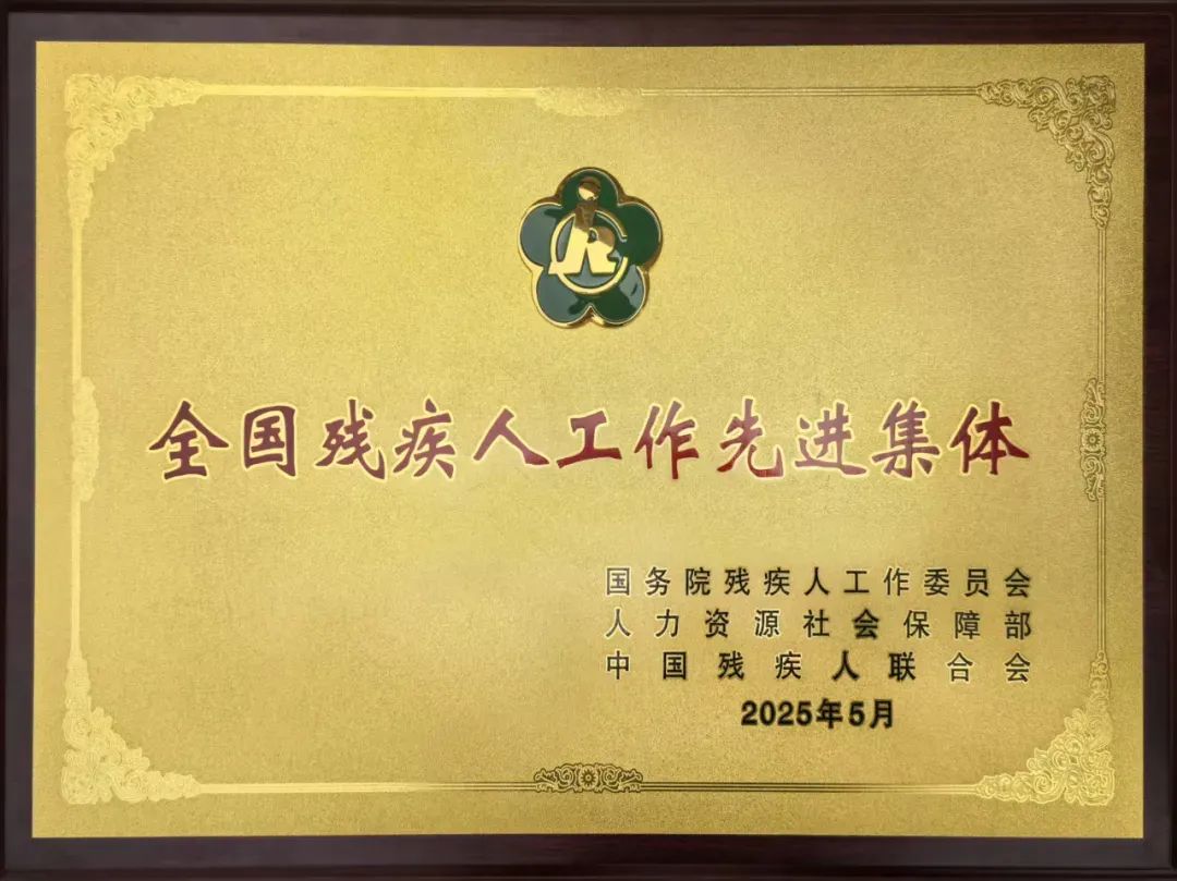 2025 年 5 月 16 日,第七次全国自强模范暨助残先进表彰大会在北京举行。我中心被国务院残疾人工作委员会、人力资源社会保障部、中国残疾人联合会授予“全国残疾人工作先进集体”,全国仅200个单位获此殊荣。