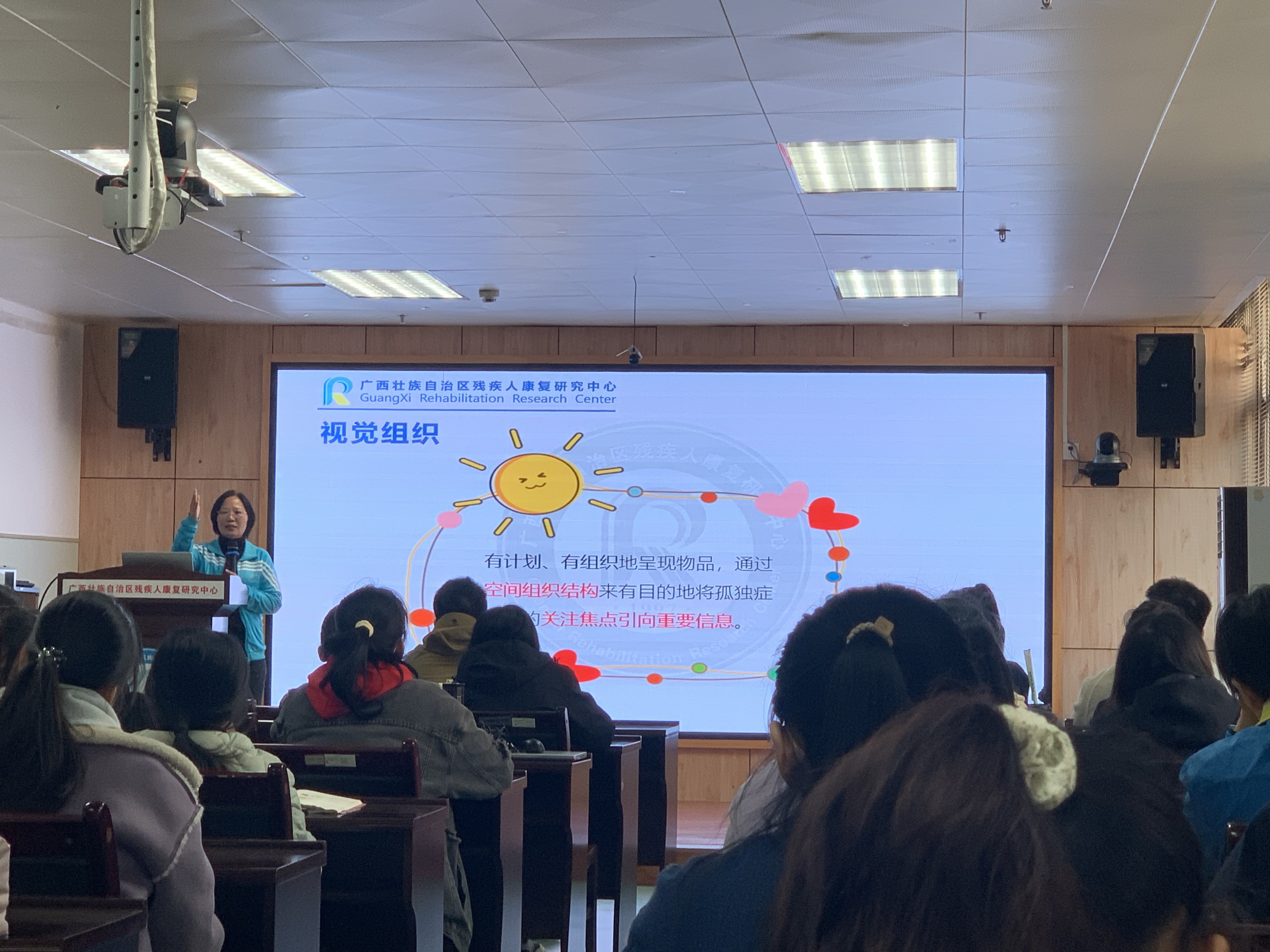 2025年1月10日,自治区残疾人康复研究中心康复教育科开展“视觉结构在孤独症儿童康复教学中的应用”主题业务培训。此次培训旨在增强康复教师对视觉支持策略的理解与应用能力。培训由康复教育科科长蒙爱珍担任主讲人,康复教育科全体教师以及科室的进修生、实习生参加培训。