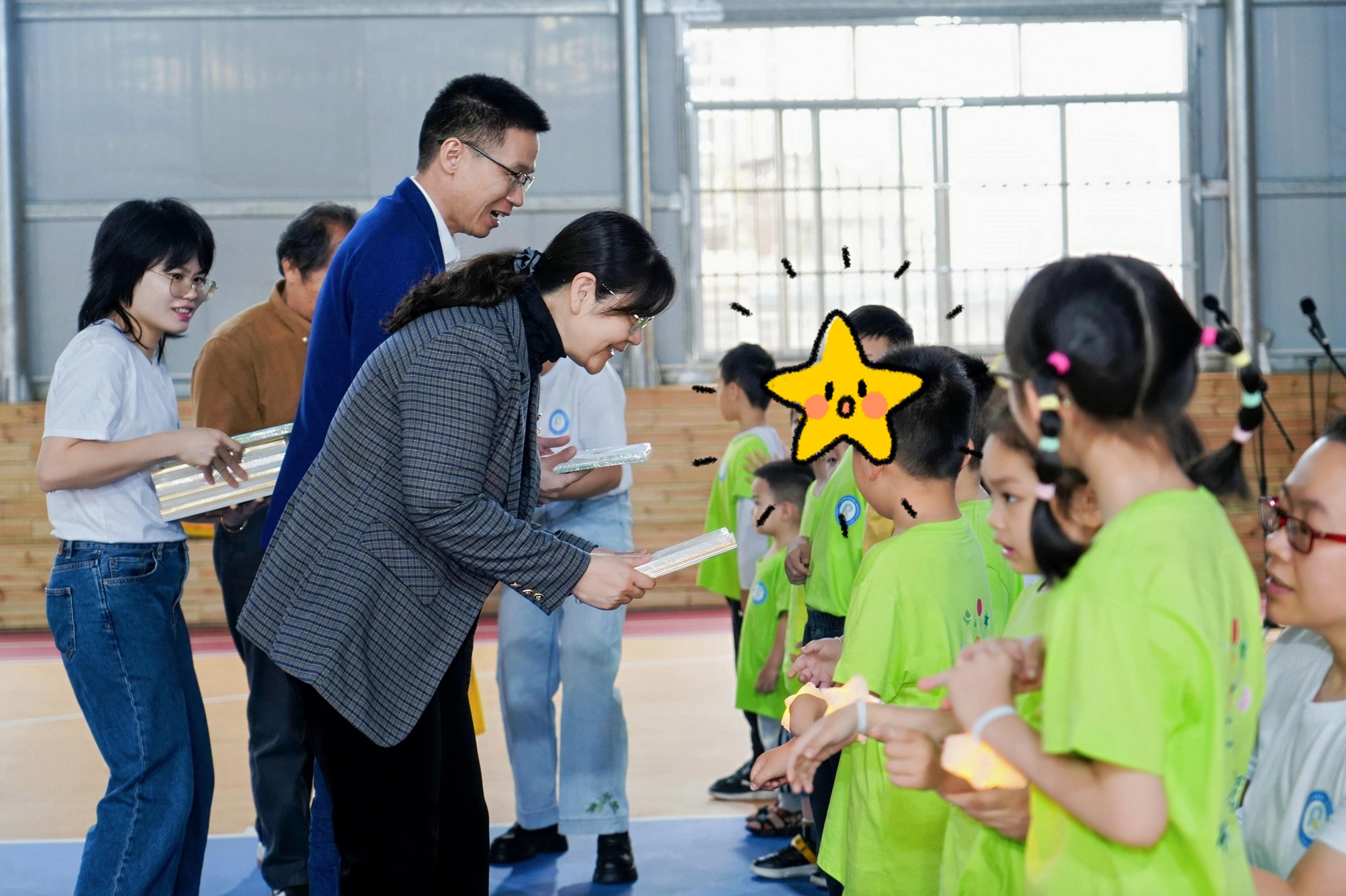 图为活动中嘉宾为孩子赠送礼物