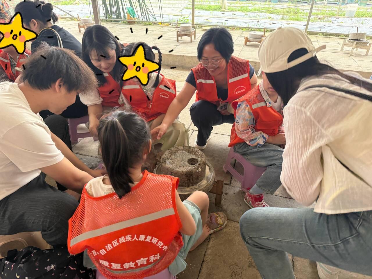 与此同时,一场别开生面的“小小豆丁田园启航”亲子研学活动在广西八桂田园同步举行。百余名在训儿童在家长和老师的陪伴下,走进大自然,体验农耕与劳动的乐趣。孩子们参观了蔬果种植园,认识各种植物;在豆浆工坊里,亲手挑选豆子、推动石磨,体验传统豆浆制作的全过程,并品尝了自己的劳动成果;最后还在采摘区进行了快乐采摘。这场户外研学将康复理念融入自然与社会实践,旨在提升孩子们的生活认知与实践能力,也为亲子家庭创造了珍贵的共同成长记忆。